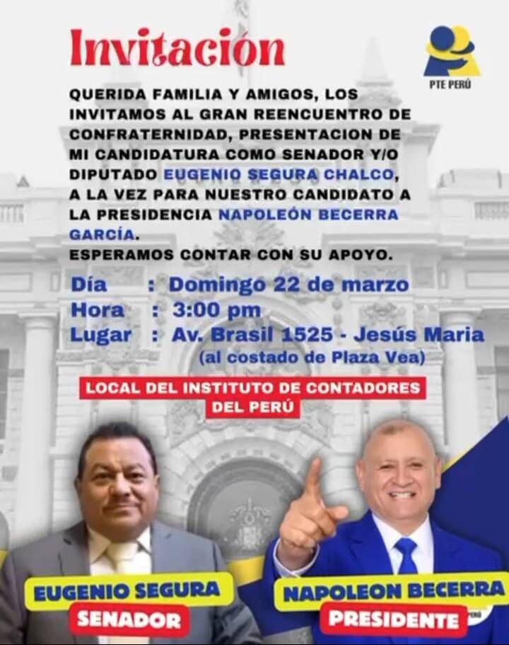 También aparece un hilo conductor emocional y simbólico. El PTE reivindica el legado de Napoleón Becerra y sostiene que ese sueño sigue vivo en quienes trabajan, luchan y se esfuerzan por un Perú mejor: para los niños, para las madres que “luchan cada día” y para un país “de todas las sangres” que no se rinde.